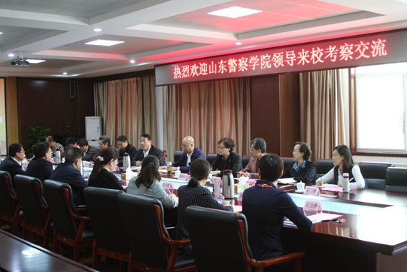 山东政法学院院长吕涛介绍了学院的历史发展情况和学院在人才培养、学科建设、科学研究、社会服务等方面的基本做法和经验。副院长刘炳君介绍了山东政法学院在人才引进、校园信息化建设等方面的基本情况。教务处和人事处负责人分别就山东政法学院的课程体系建设、教学质量保障体系建设以及教师考核、教师工作量计算等方面作了具体介绍。