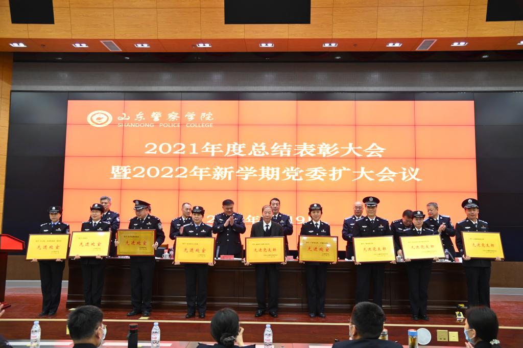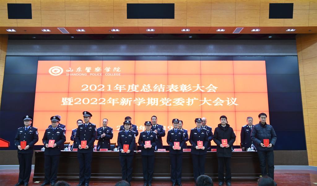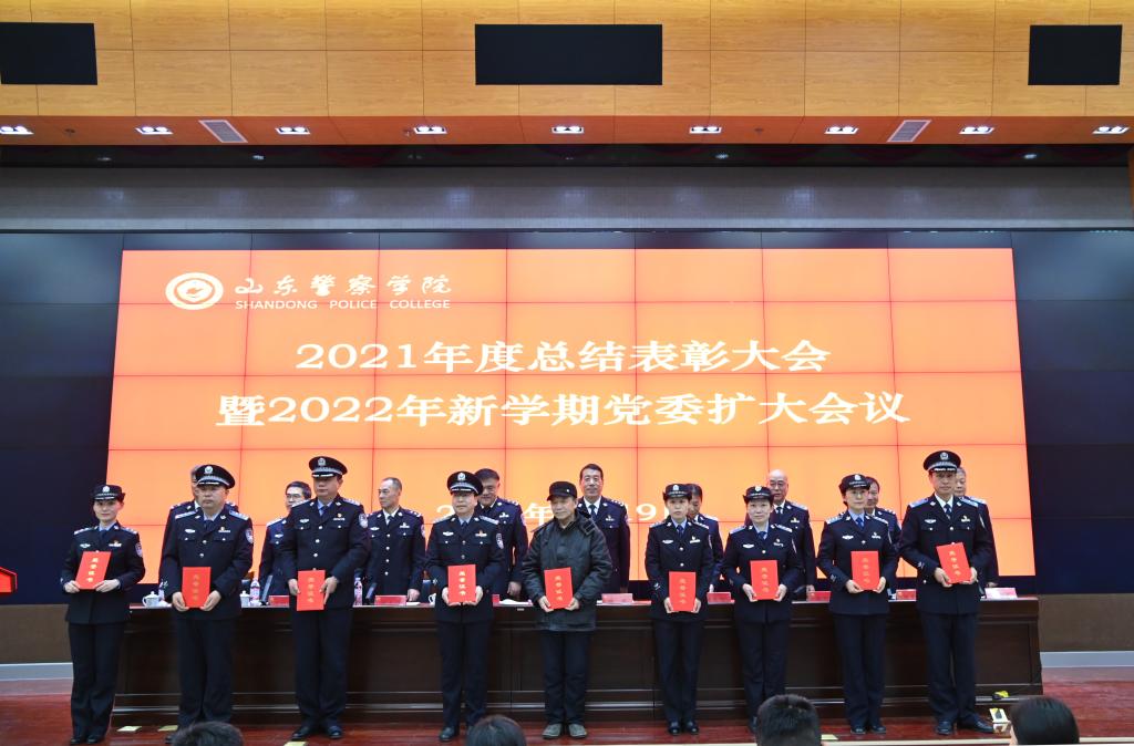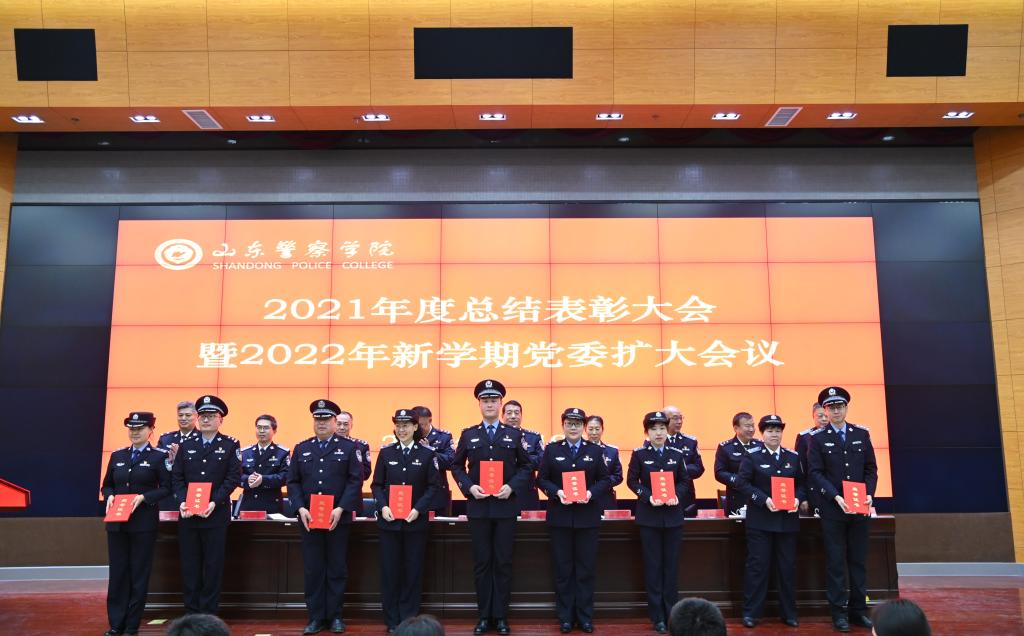 会上,党委委员、副院长刘大为宣读了《中共山东警察学院委员会关于表彰2021年度优秀共产党员、优秀党务工作者和先进党支部的决定》《山东警察学院关于表彰2021年度先进集体和先进个人的决定》,与会院领导共同为受表彰集体和个人代表颁发了奖牌证书。
