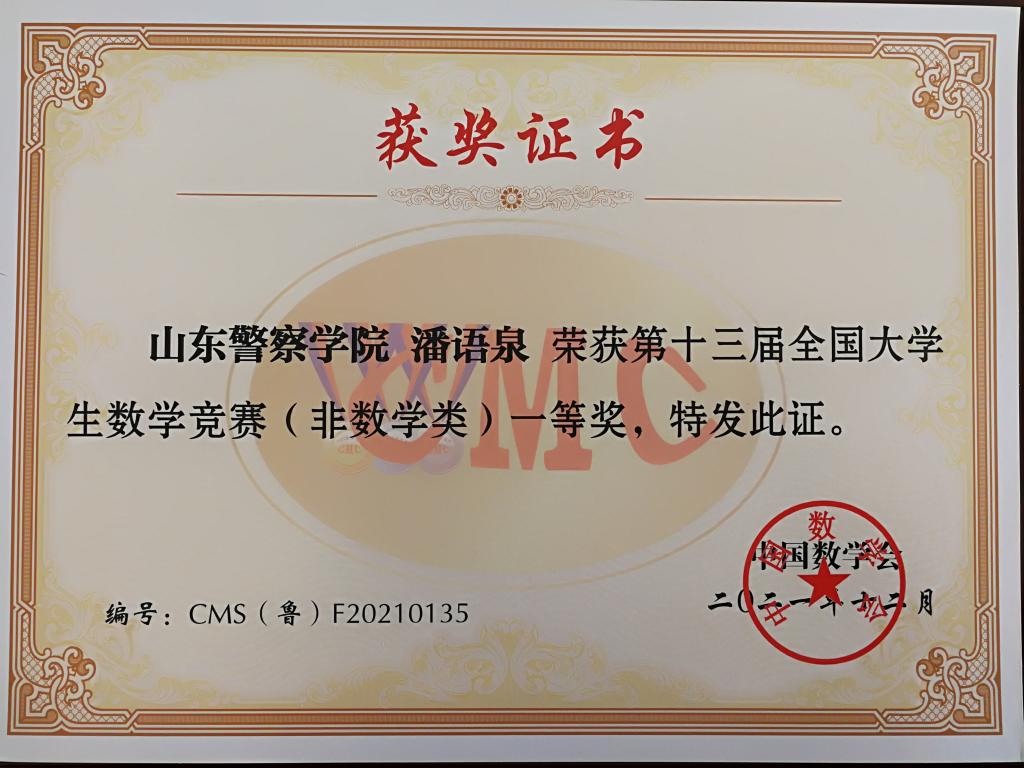 为激发我院学生学习数学的积极性,发现和选拔数学创新人才,在学院领导的大力支持下,学院公共基础教研部组织数学竞赛社24名同学参加了第十三届全国大学生数学竞赛暨第十二届山东省大学生数学竞赛,取得了优异成绩,斩获山东赛区一等奖3项、二等奖5项、三等奖4项。参赛学生由公共基础教研部李秀芬老师具体指导。