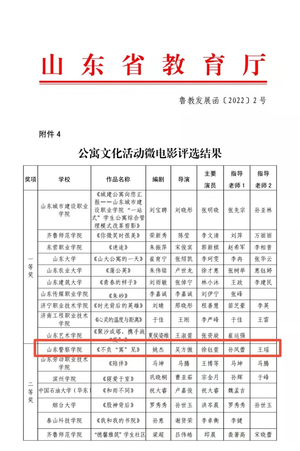 近日,山东省教育厅发布2021年高校“公寓的故事”主题系列活动获奖名单,我院选送的作品《不负“寓”见》获得微电影类二等奖。