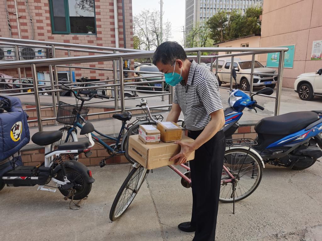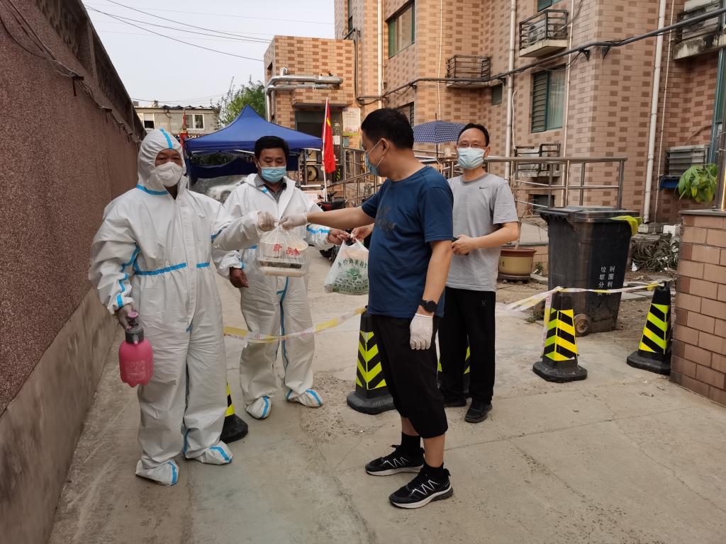 封控单元居民购买生活物资的渠道,或是在附近超市进行线上选购、线下统一送货,或是在网上购买、快递送货,都是将货物送至小区门口,需要志愿者运送至单元门口。一些租房的年轻居民,一日三餐基本都通过外卖解决,有时还在小区内的超市购买生活用品。居民的各种需求都在微信群留言提出。为了最好地方便居民生活,值班志愿者总是一刻不停地盯着手机,只要微信群中出现需求信息,志愿者立即秒回复,迅速进行运送或购买。就这样一趟一趟跑,一件一件送,一天下来累计要跑几十次。在居民购买蔬菜水果等物资相对集中的时候,搬运任务很重。为了更好地开展工作,黎毅等几位老师开私家车、李序平老师用电瓶车、李世亭等几位老师用自行车,每天穿梭于小区门口、丰巢快递柜与封控单元门口之间。苏效建老师值班当天,恰逢居民购买日用品高峰,连续搬运桶装水,一天下腰酸腿疼,脚上磨起了血泡,行走不便。而不管如何劳累,志愿者始终保持了高涨的服务热情,微信群里总是充满热情的回复:“好的,收到信息!”“您的外卖已在单元门口,请下来取!”就在志愿者一次次的运送中,居民收到了新鲜的蔬菜,吃上了热气腾腾的外卖,他们的心里是踏实的,感觉是温暖的。