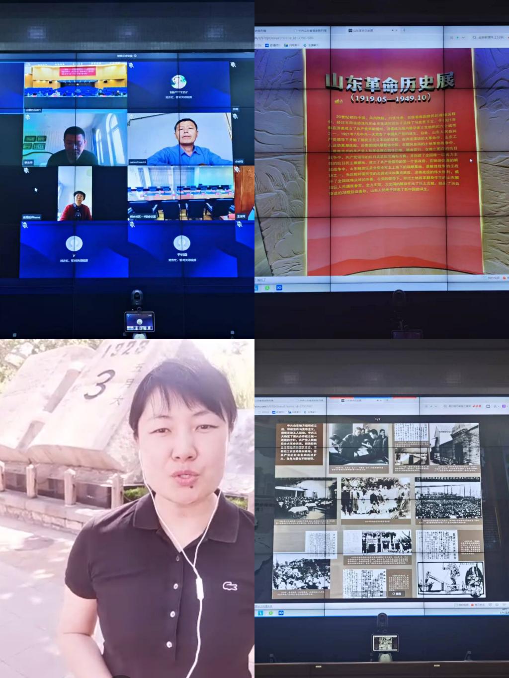 办公室田萌同志在济南市护城河畔的“五三惨案”纪念碑前通过视频连线方式为全体党员作了题为《牢记“五三”惨案教训,做好公安教育工作》的主题党课。全体党员参观了“红色云展厅”——山东省党史陈列馆。一张张图片,一件件实物,把大家带到了那个风雨飘摇、战火纷飞的革命岁月。