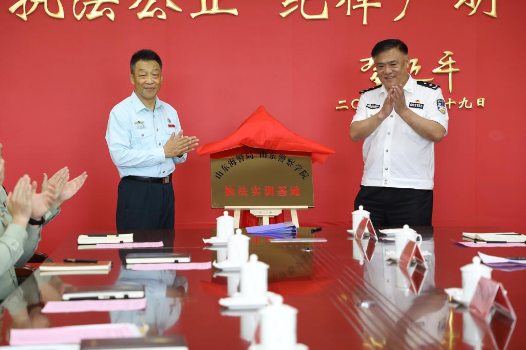 仪式上,双方签订了山东警察学院、山东海警局战略合作协议,徐仲成副院长和林芳忠副局长共同为“山东海警局山东警察学院执法实训基地”揭牌。