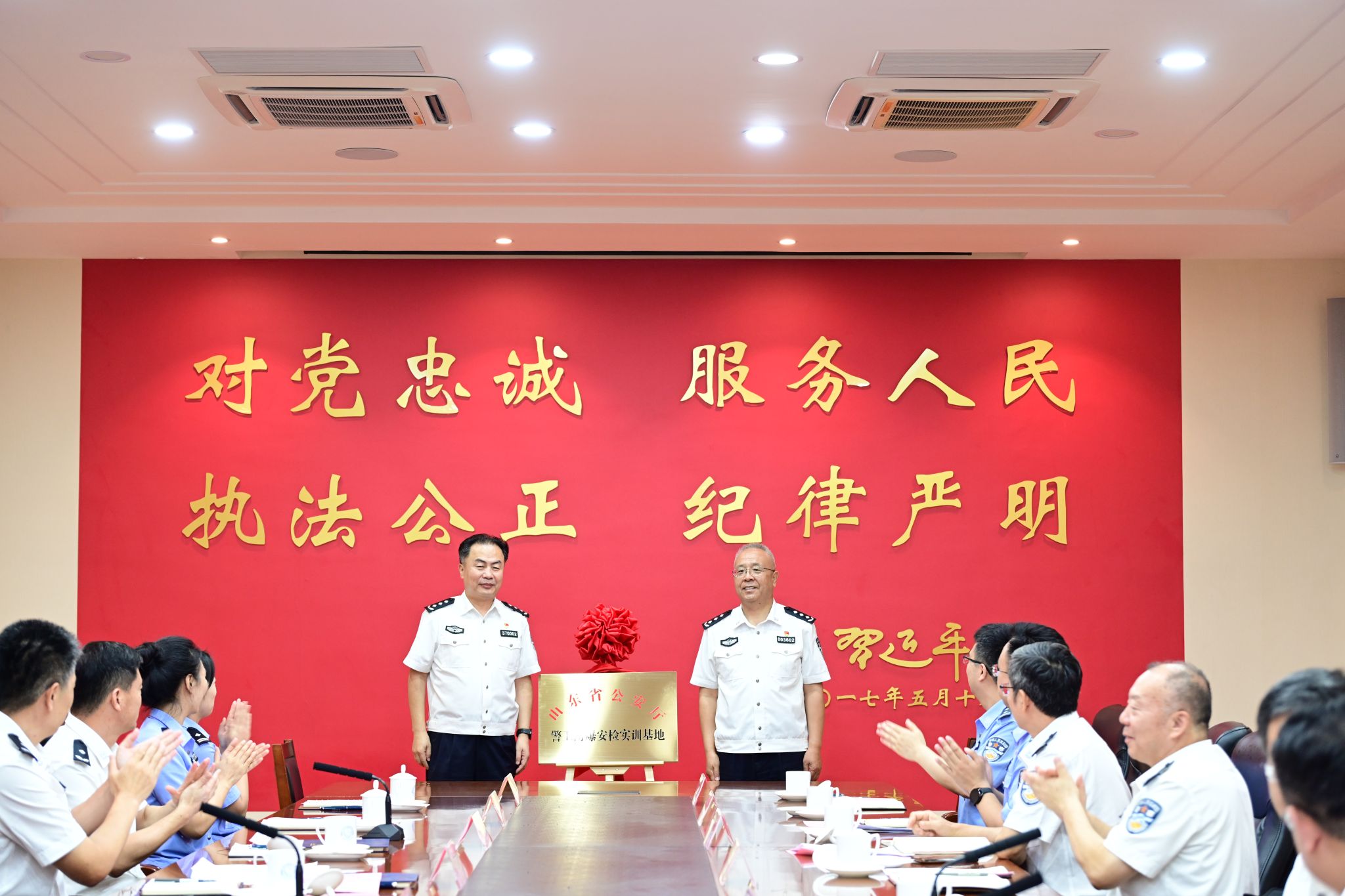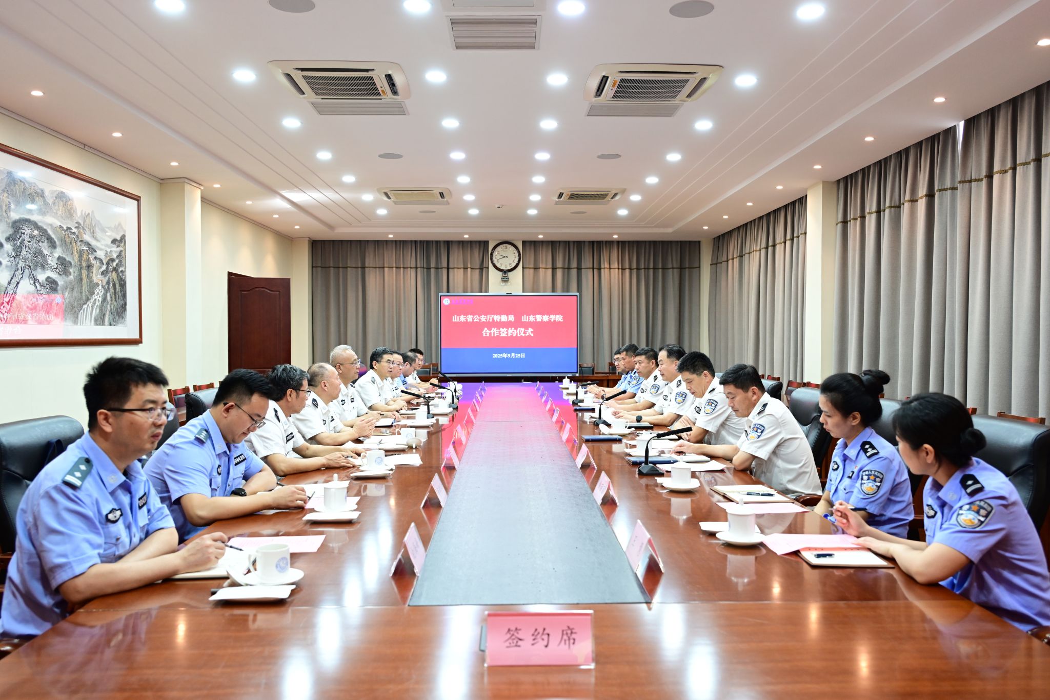 毕可志、郭峰共同为山东省公安厅警卫防爆安检实训基地揭牌,学校治安学院院长王晓东与省厅特勤局第五支队支队长蒋恩源代表双方签署合作协议。省厅特勤局、学校相关部门负责同志参加了仪式。