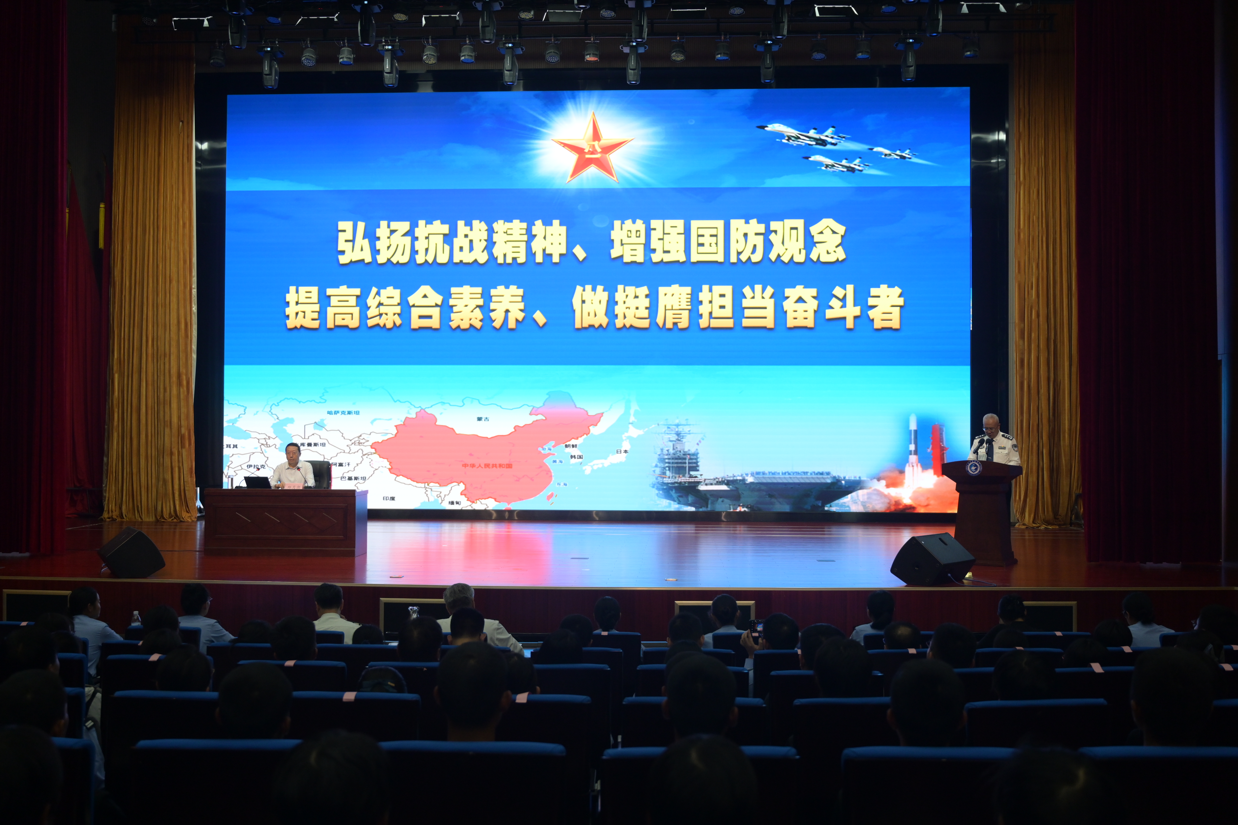 邱月潮以《弘扬抗战精神,增强国防观念,提高综合素养,做挺膺担当的奋斗者》为题,从百年未有之大变局国际国内形势出发,结合自己40多年的军旅生涯和人生经验,解读了伟大的抗战精神;运用大量数据和正反两方面的生动案例,详细阐释了“为什么要加强国防建设”“怎么建设强大的国防力量”“广大青年学生要增强国防观念,做新时代挺膺担当的奋斗者”三方面的问题,为同学们做了一场精彩的国防教育专题报告。
