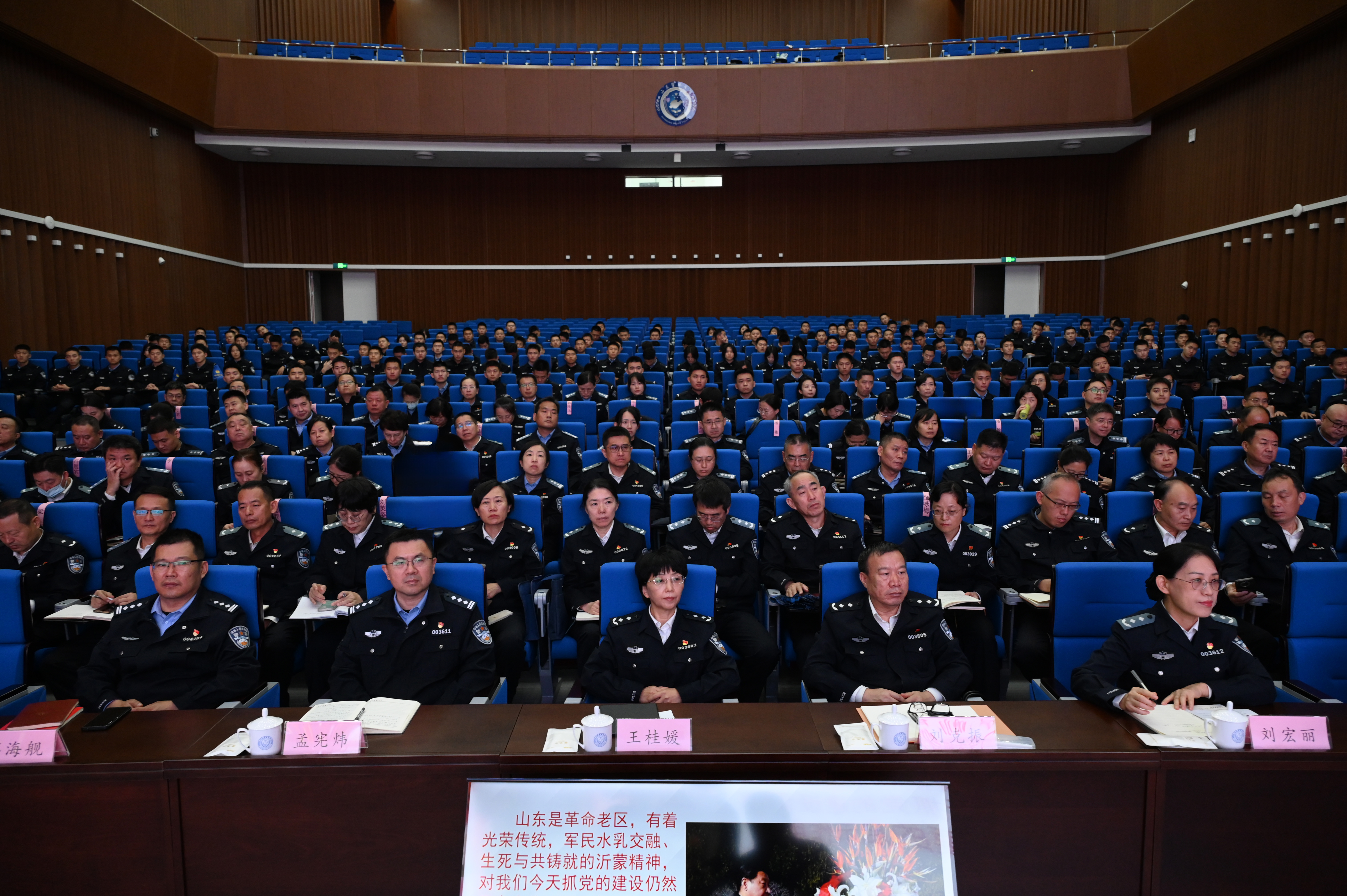 白皓重点围绕推动“沂蒙精神代代传”的“为什么”“传什么”“怎么传”三个方面,讲述了革命战争年代沂蒙山区“党群同心、军民情深、水乳交融、生死与共”的壮丽篇章,深刻揭示了沂蒙精神作为中国共产党人精神谱系重要组成部分的独特地位和光辉意义。他鼓励师生要“学在前、走在前”,始终与党和祖国同向、与人民同心、与警徽同行,讲好沂蒙精神的红色故事,守护好沂蒙精神的发展成果,为谱写中国式现代化山东篇章作出新的更大贡献。