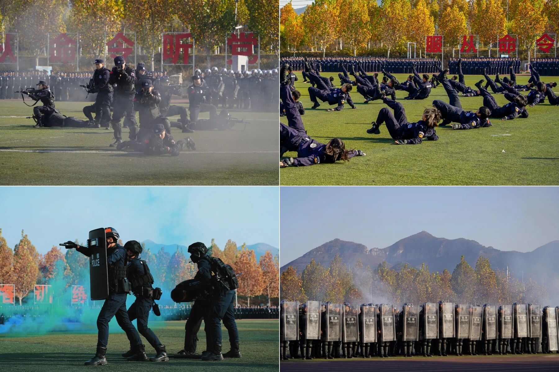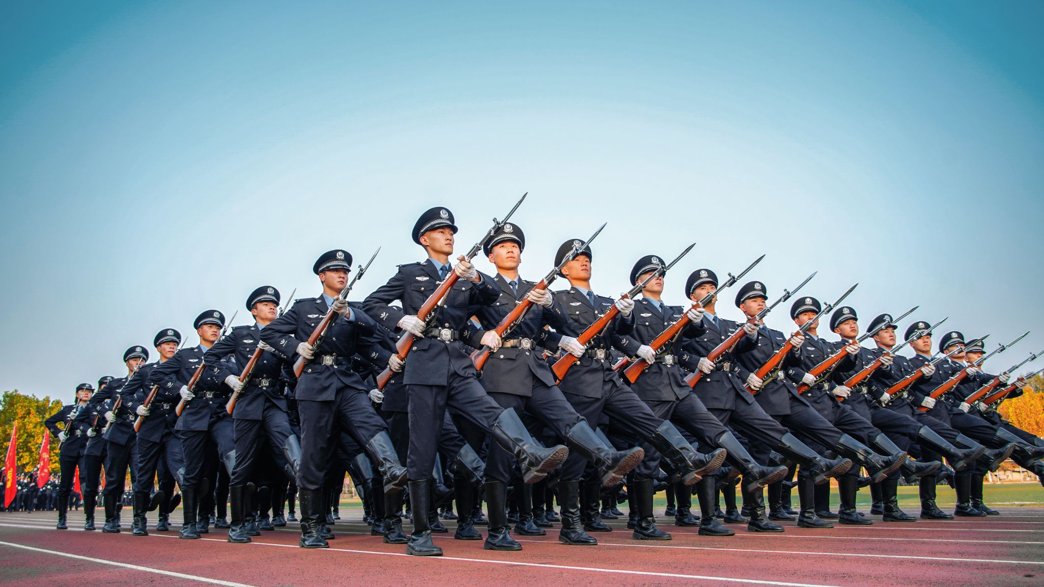 阅警仪式上,组织了升国旗、迎警旗、分列式和新生宣誓仪式,2025级新生展示了警务化教育训练取得的阶段性成果,高年级学生进行了警务实战科目演练,汇报了实战技能教学训练成果。