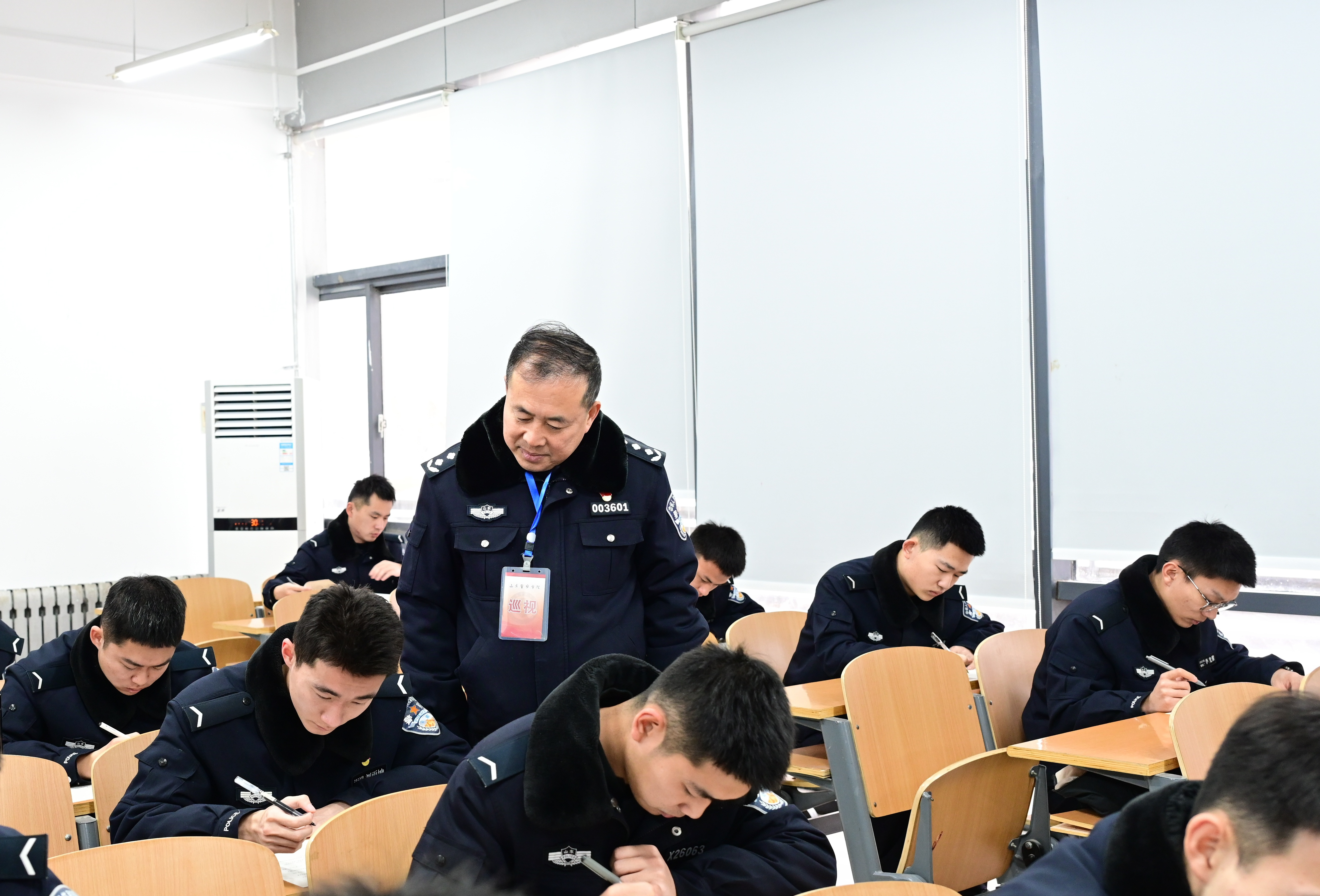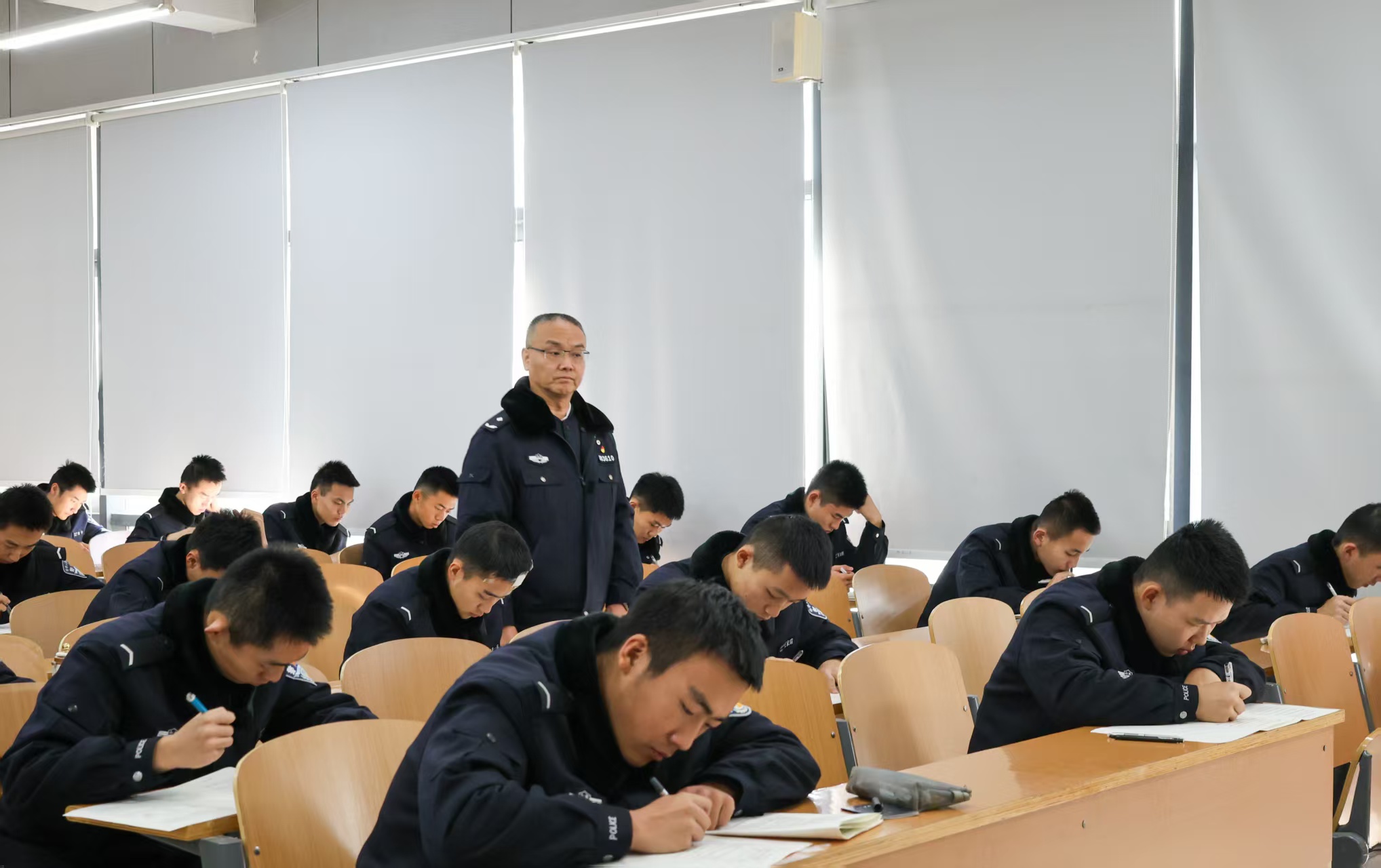 学校领导通过实地察看、监控巡查、询问了解等方式,重点对考试组织、考场秩序及考风考纪等情况进行巡查与指导。从巡查结果看,各考场准备充分,考试环境整洁安静,组织规范有序;监考教师按时到岗、认真负责,严格执行考试流程;考生们精神饱满,专注答题,自觉遵守考场纪律,体现了预备警官良好的职业素养和诚信应考的精神风貌。