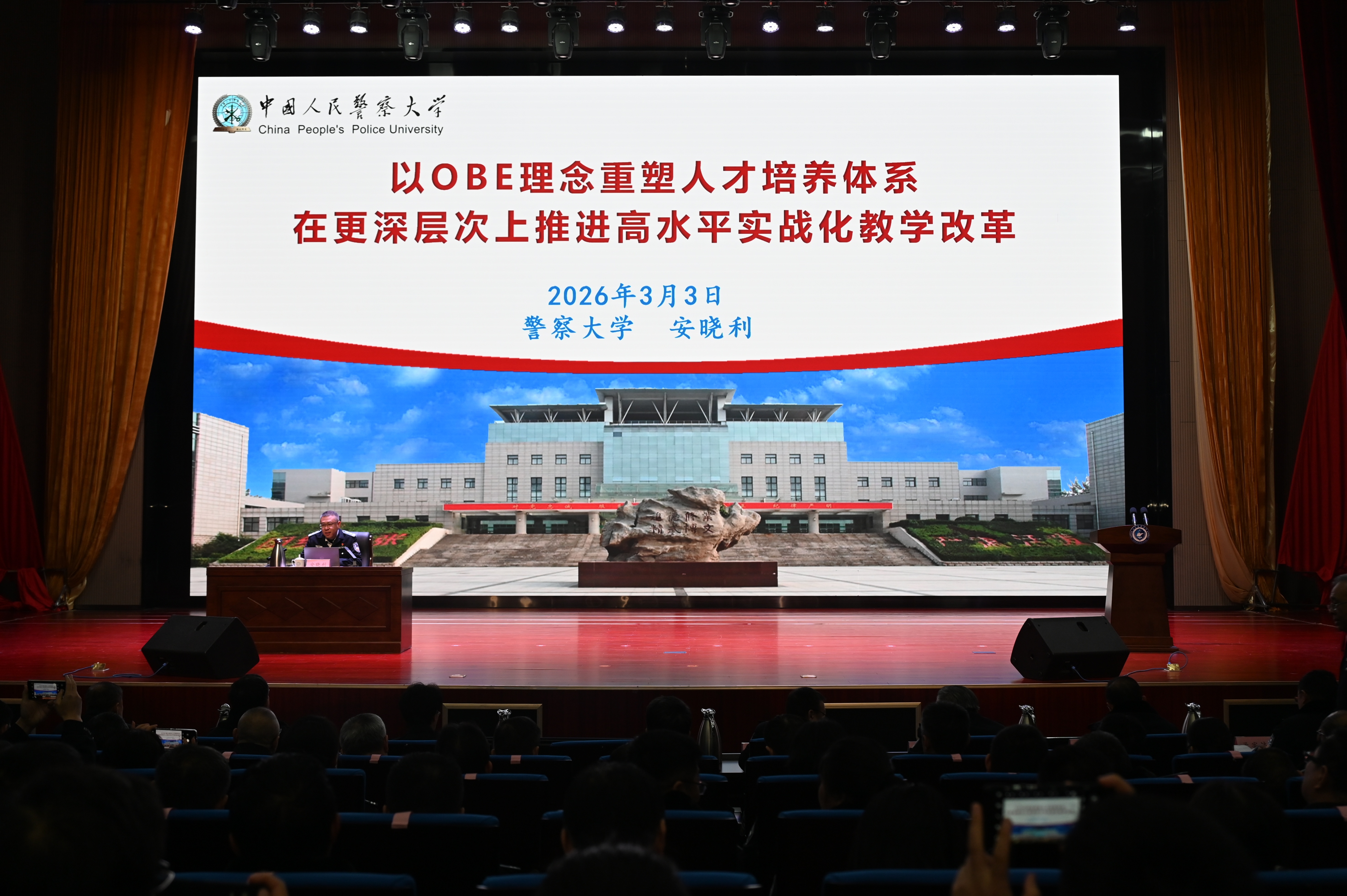 刘福宏强调,2026年是“十五五”开局之年,是学校提质进位的攻坚之年。全校上下要充分认识当前形势的深刻变化,聚焦重点任务,坚持目标导向、问题导向和结果导向,扎实推动各项任务落实。要解放思想、树牢创新思维,坚决破除守成思维,在学科融合、人才培养等关键环节大胆创新,努力打造公安科技与理论创新高地。要勇于担当、强化责任意识,鼓励在重点学科、重大科研等任务中打头阵、当先锋,健全容错纠错机制,以正向激励激发干事创业活力。要坚持向书本学、向实践学、向同行学、向基层学,在学思践悟中提升理论素养、专业能力和科技应用本领。要严守政治纪律、学术道德和职业操守,巩固中央八项规定精神学习成果,规范会议纪律,坚决守牢安全底线。要以一往无前的奋斗姿态、求真务实的工作作风,凝心聚力、真抓实干,以高质量发展的优异答卷迎接建校80周年。