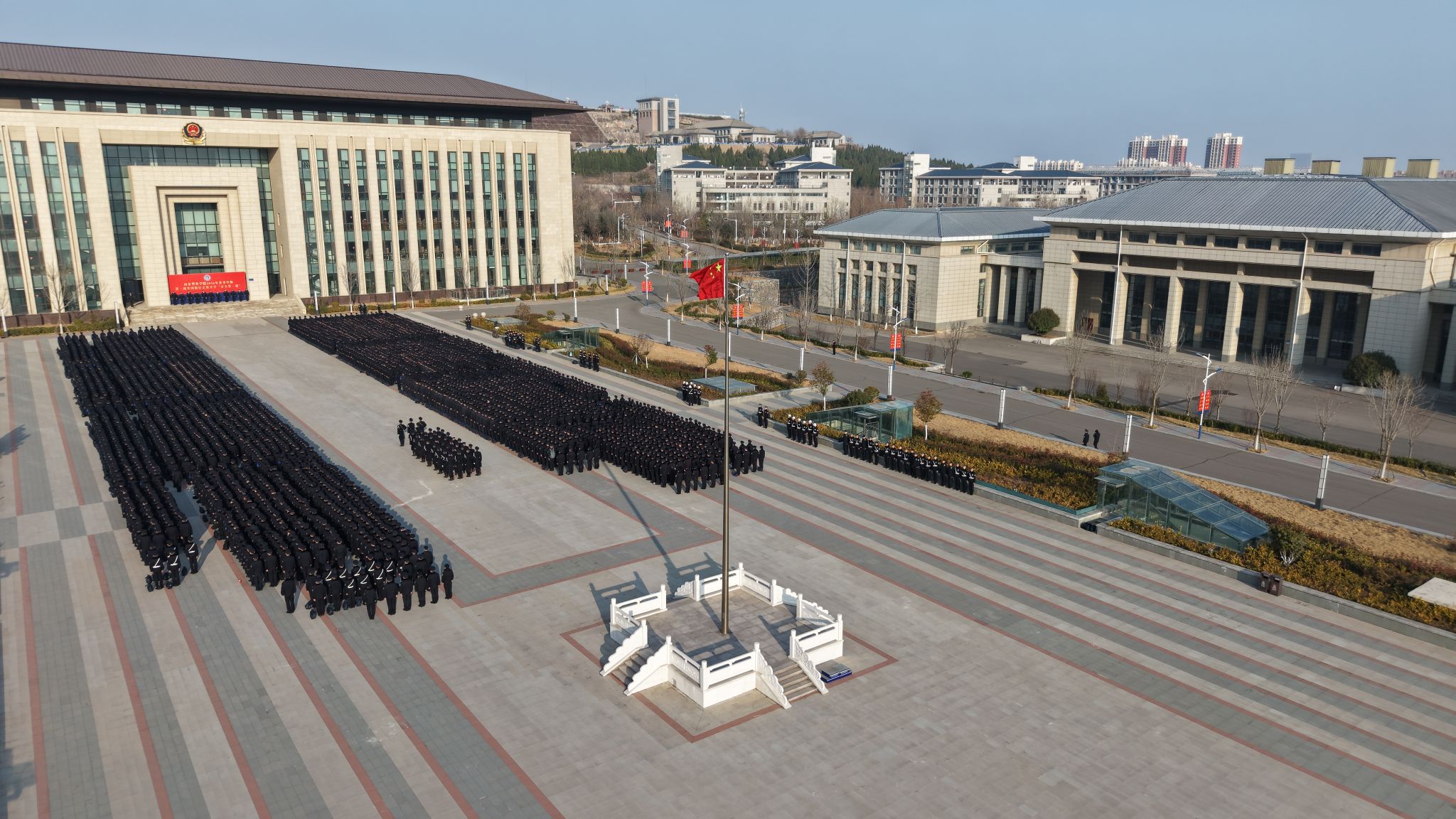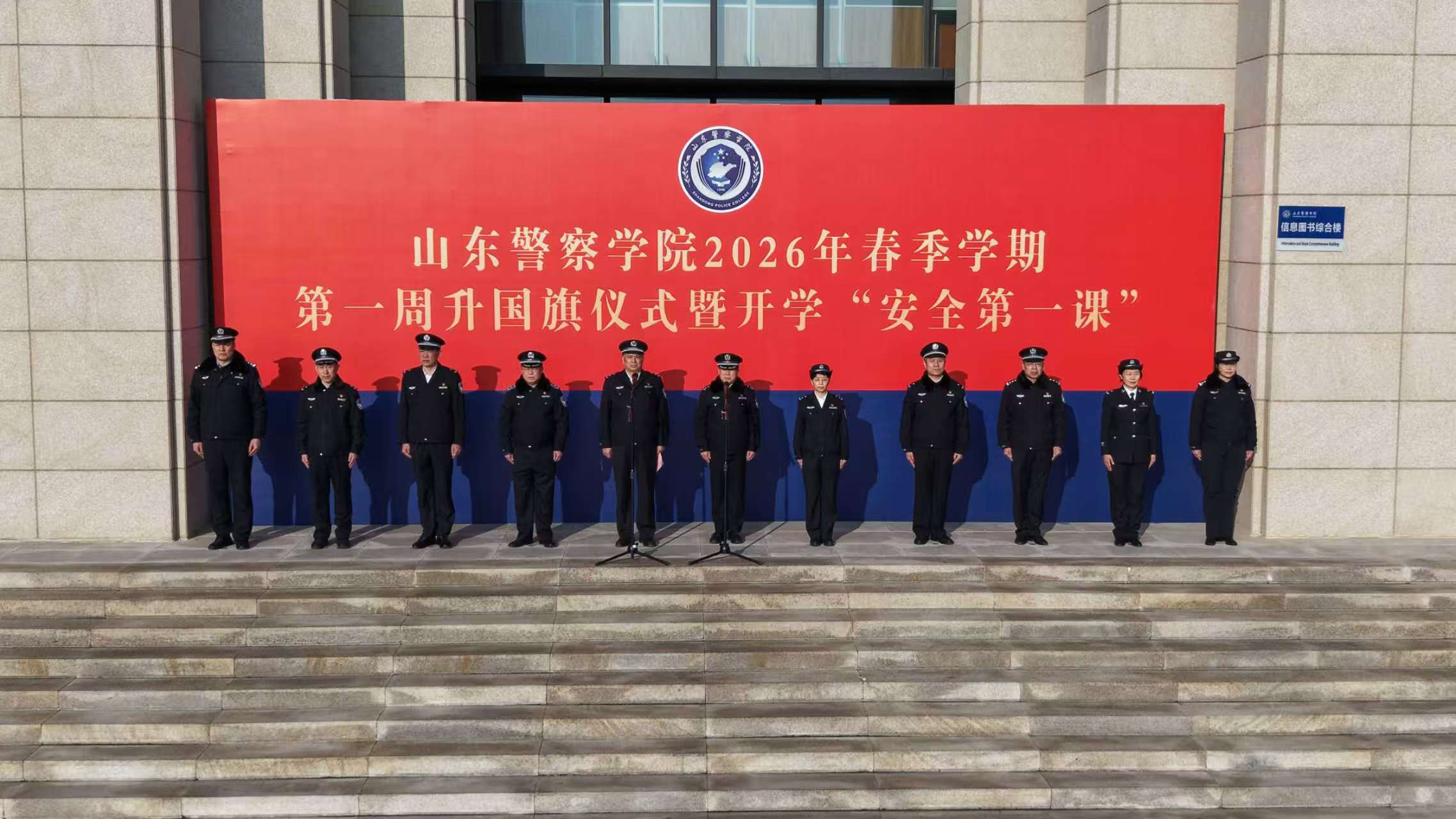 3月9日上午,学校在明水校区中心广场举行2026年春季学期第一周升国旗仪式暨开学“安全第一课”。学校党委书记刘福宏,党委副书记、统战部部长王桂媛出席仪式,党委委员、副院长贺曙敏主持仪式。