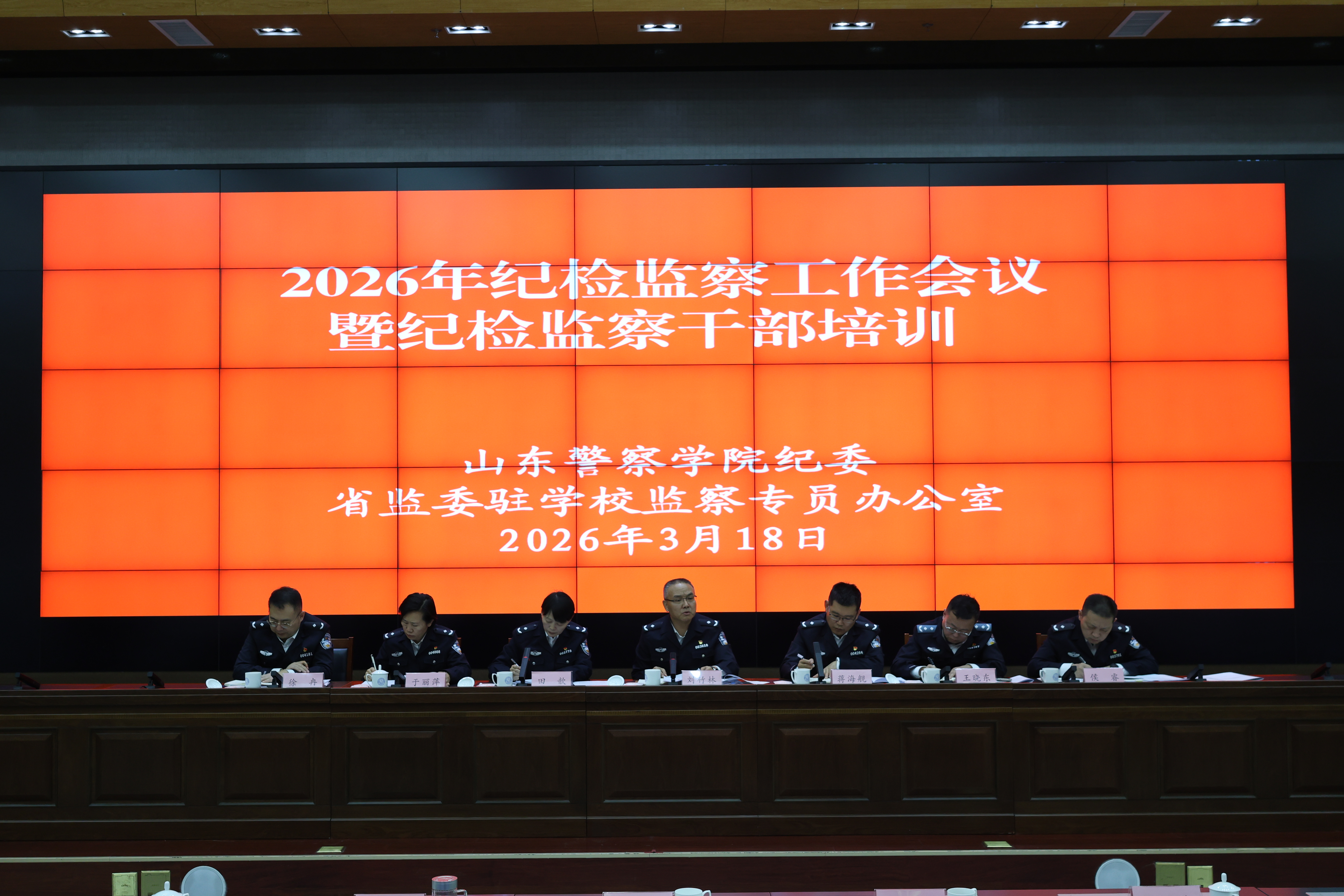 为深入学习贯彻二十届中央纪委第五次全会、十二届省纪委第五次全会、全国和全省公安机关党风廉政建设会议精神,贯彻落实学校2026年全面从严治党暨党风廉政建设会议要求,扎实推进省纪委“纪检监察工作规范化法治化正规化建设年”行动部署,3月18日,学校在明水校区召开2026年纪检监察工作会议暨纪检监察干部培训会。校党委委员、纪委书记、省监委驻学校监察专员刘竹林出席会议并讲话。