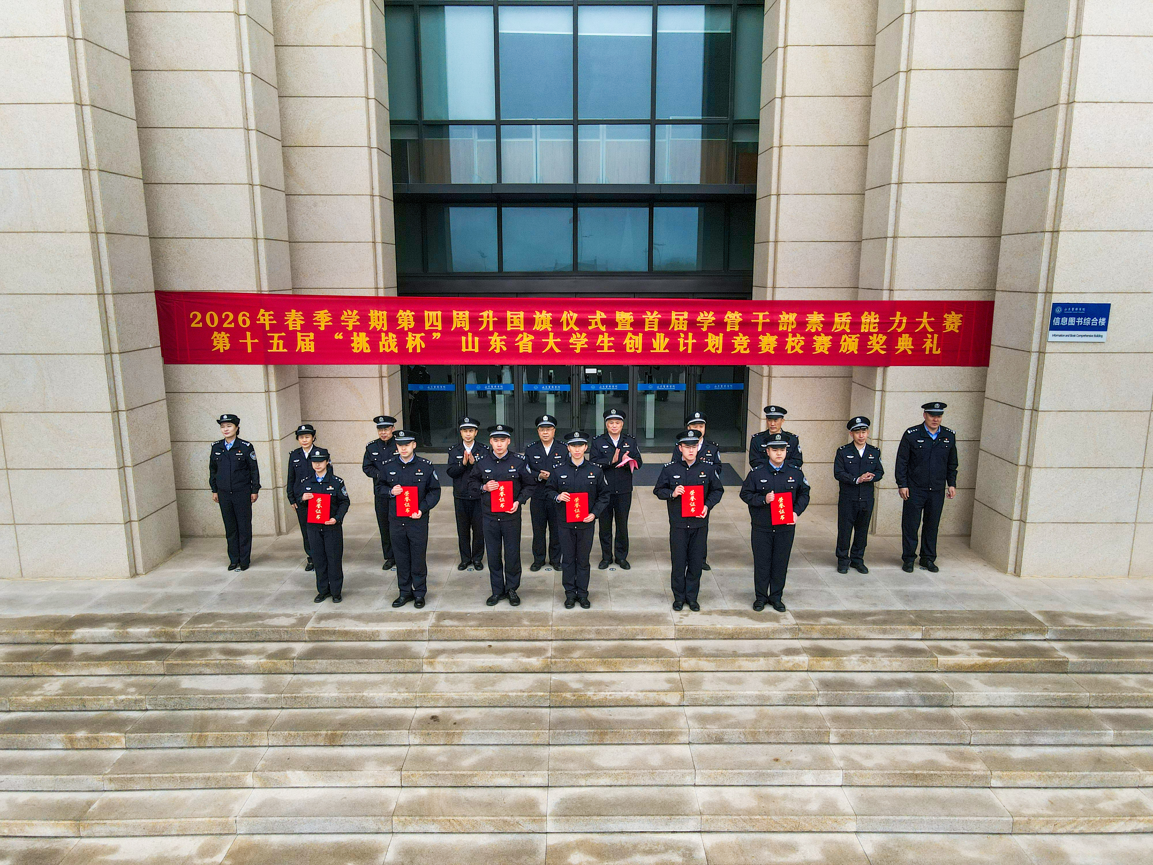 3月30日上午,我校在明水校区中心广场举行2026年春季学期第四周升国旗仪式暨首届学管干部素质能力大赛、第十五届“挑战杯”山东省大学生创业计划竞赛校赛颁奖典礼。学校党委副书记、院长毕可志出席活动并讲话,党委委员、副院长贺曙敏主持。