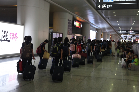 学生离开车站奔赴驻地