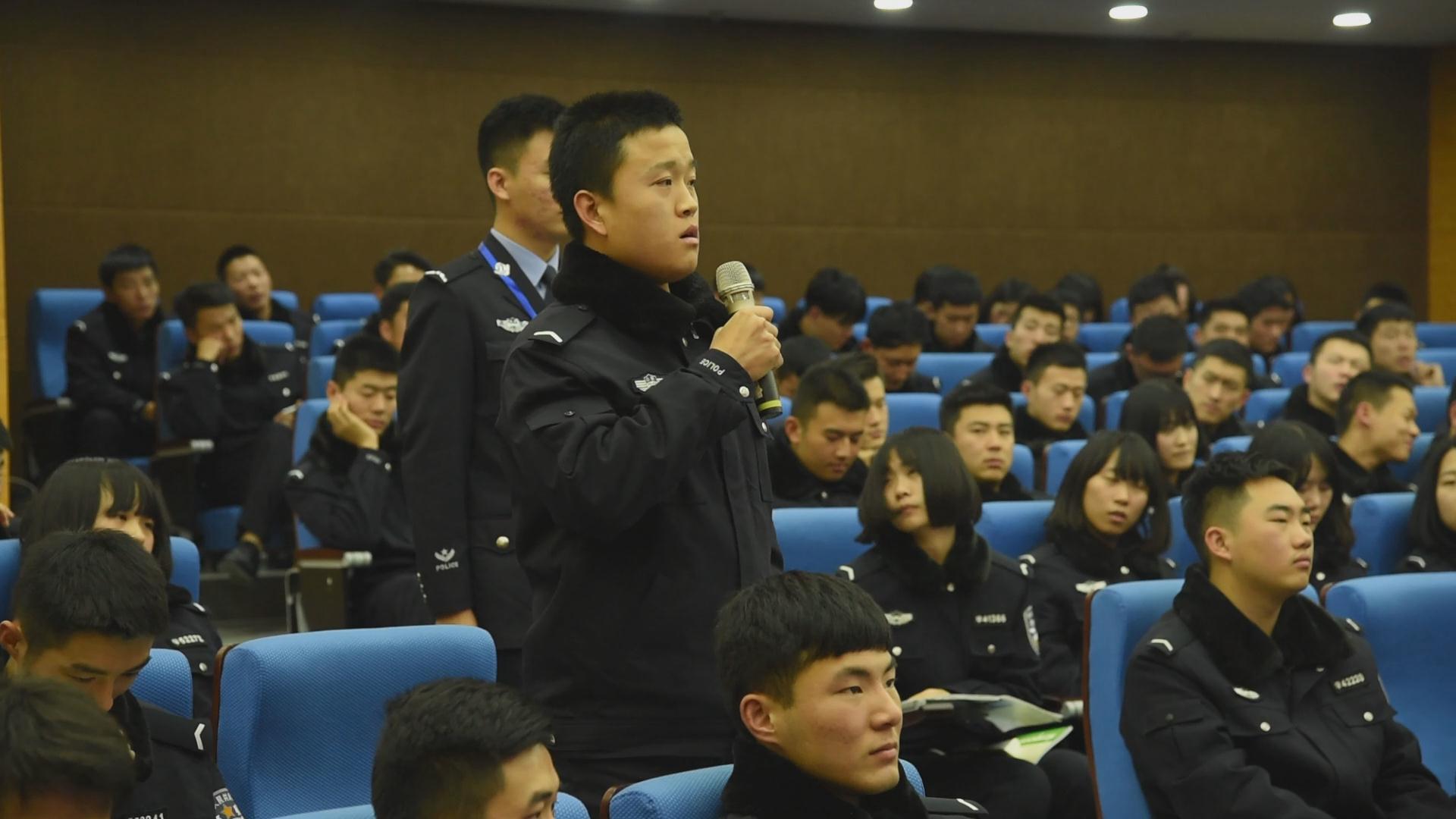 来自黑龙江省双鸭山市集贤县公安局的周平玉局长、广东省珠海市公安局高新分局的郑木舜局长、江西省南城县公安局的周庆春局长和广东省肇庆市公安局大旺分局的宁娟局长分别围绕自身的从警经历,向同学们讲述了从警路上的酸甜苦辣以及经验和感悟。听君一席言,胜读十年书,同学们被四位局长的现身说法和感人经历深深打动,从中受到很好的教育和启发,对将要从事的公安工作有了更深刻的理解和认识,对履行好人民警察的职责也有了更大决心和信心。