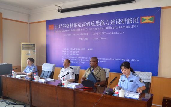 5月27日上午,2017年格林纳达高级反恐能力建设研修班在我院结业。学院王离京副院长出席结业仪式并致辞,向学员颁发了结业证书并赠送了纪念品。