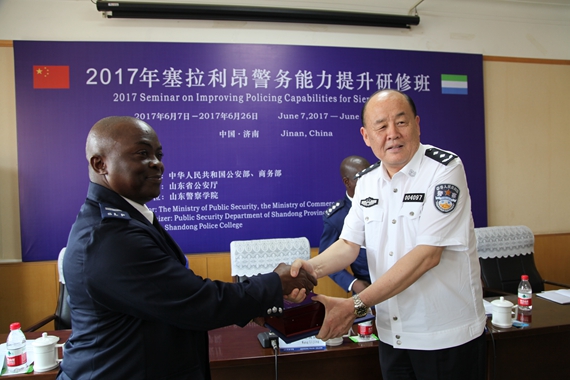 6月20日上午,2017年塞拉利昂警务能力提升研修班在我院顺利结业,王离京副院长参加结业典礼,为学员颁发结业证书,并热情致辞。