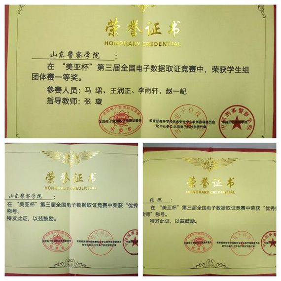 11月11至12日,“美亚杯”第三届全国电子数据取证竞赛暨网络安全执法新技术研讨会在厦门举行。由我院2015情报一中队马珺、2015情报一中队王润正、2016本侦七中队赵一屺、2016级网安二中队李雨轩组成的团队获得学生组团体赛一等奖,我院获优秀组织奖,张璇老师被评为优秀指导教师。