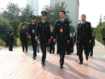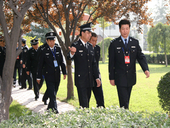 公安部赴山东大练兵考核组莅临我院检查指导工作 曲植凡厅长在学院亲切会见考核组一行  10月24日下午2时,公安部政治部人事训练局院校处处长、公安部赴山东大练兵考核组组长陈延超同志,公安部机关党委组织处副处长、公安部赴山东大练兵考核组副组长王军同志,北京市公安局巡警总队调研员、公安部赴山东大练兵考核组副组长王佐联同志、山西警官高等专科学校副校长、公安部赴山东大练兵考核组副组长张琨同志,武警学院教师、公安部赴山东大练兵考核组成员吴晓尉同志,福建省福州市公安局防暴支队中队长、公安部赴山东大练兵考核组成员蔡勇同志,广西警官高等专科学校教师、公安部赴山东大练兵考核组成员丁勇同志,北京警察学院办公室副主任、公安部赴山东大练兵考核组成员赵荣祥同志等一行8人莅临我院检查指导工作。 在学院东校区体育馆,山东省省长助理、省公安厅党委书记、厅长兼山东警察学院院长曲植凡同志亲切会见了考核组全体成员。会谈中,曲厅长介绍了山东公安机关开展大练兵活动的简要情况以及山东公安教育的基本情况,对学院培养大批公安专门人才,为山东公安队伍建设做出的积极贡献给予了充分的肯定。他希望,考核组同志在山东考核调研时,对山东公安机关大练兵活动以及学院建设发展多提宝贵意见,以更好的推动山东公安工作。陈延超同志介绍了考核组在山东进行大练兵考核以及在学院进行调研的活动安排。他表示,要严格按照公安机关大练兵考核指导方案和院校管理与建设调研方案的要求,认真做好大练兵考核和院校调研工作。省公安厅党委委员、学院党委书记杨和德同志简要介绍了学院的基本情况,特别是在院校管理以及开展院校正规化建设中取得的经验。陈延超同志表示,将认真开展院校调研工作,及时将山东警察学院在工作上的亮点总结上报公安部,不辜负大家的努力工作。 省公安厅党委委员、副厅长朱有林,省公安厅党委委员、副厅长王献增,省公安厅党委委员、纪委书记任学增,省公安厅助理巡视员、政治部副主任戚发红,山东警察学院党委副书记、副院长王庆功, 山东警察学院党委副书记、纪委书记王振华,山东警察学院党委委员、副院长王兴发,山东警察学院党委委员、副院长谭永红等参加了会见。 在杨和德书记等学院领导的陪同下,大练兵考核组成员察看了学院东校区的办学条件。下午3时,曲植凡厅长等厅领导和公安部政治部院校处处长陈延超以及其他公安部赴山东考核组成员出席了2005级新生校阅暨宣誓仪式。校阅仪式结束后,学院领导陪同考核组成员察看了西校区办学条件。在西校区警体训练馆和警训场,陈延超处长等观看了学生实战技能训练,对学生展示的过硬本领和表现出良好的精神风貌给予了充分肯定。晚上8时,大练兵考核组成员在学院领导的陪同下出席了2005级新生“当我着上警装时”演讲比赛。比赛结束后,陈延超等领导同志为获奖选手颁发了证书。 10月24日至28日,公安部赴山东大练兵考核组将在济南和济宁两地对我省公安机关2005年度的大练兵工作进行考核,同行的公安院校调研组将对我院建设与管理进行调研。