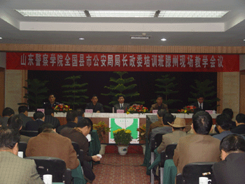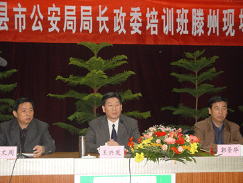 第25期全国县市公安局局长政委培训班 赴滕州市公安局现场教学  10月27日至29日,由公安部委托我院举办的第25期全国县市公安局局长、政委首任培训班全体成员,在学院党委委员、副院长王兴发同志带领下赴滕州市公安局现场教学,学习滕州市公安局坚持以队伍建设为先导,坚持走科技强警之路,坚持创新发展求突破,全面实施素质建警,不断开创公安工作新局面的好经验、好做法。 对本次现场教学,滕州市委、市政府,枣庄市公安局、滕州市公安局高度重视,滕州市委副书记、市长杜永光,滕州市委副书记刘全君分别出席了滕州市公安局举行的欢迎仪式并致词。枣庄市公安局党委副书记、政委李文周主持了欢迎仪式。枣庄市公安局副局长、滕州市公安局党委书记、局长李卫东在欢迎仪式上介绍了滕州市公安局队伍建设和公安工作的基本情况。 王兴发副院长在欢迎仪式上讲了话,他说,每期全国县市公安局局长、政委培训班,学院都组织培训班全体成员到优秀基层公安机关进行现场教学、参观学习,这是学院增强干训教学针对性、实用性的重要举措之一,是干训教学的重要组成部分和有益补充,也是学员们相互交流工作经验,提高领导水平的重要方式。滕州市公安局近年来狠抓队伍建设和业务建设,取得了令人瞩目的成绩,突出表现为四个方面:一是科学运筹,整合警务资源,优化打防机制,提高对社会治安的控制能力。二是实施科技强警,提升改造传统警务方式,进一步增强公安工作的科技含量。三是营造环境,优选载体,全面提高队伍整体素质。四是钢班子带出铁队伍。滕州市公安机关创造的经验,在一定程度上代表了山东公安工作的发展方向,前瞻性、操作性和实用性很强。王兴发副院长希望全体学员同志要认真虚心的学、扎扎实实的学、创造性的学,要把滕州市公安局的好经验、好做法与自身工作实际结合起来,创造性地开展工作,不断提高公安工作整体水平。 学院干训部主任郭景华和来自全国13个省市自治区及新疆生产建设兵团的84名局长、政委参加了滕州现场教学的欢迎仪式。 在滕州期间,学员们观看了滕州市公安局《今天见证辉煌》专题片,实地考察了滕州市公安局火车站电子监控一条街、善南派出所、荆善安居电子防控小区、善南治安查报站、木石派出所等地的公安工作。 近年来,滕州市公安局在滕州市委、市政府和上级公安机关的领导下,围绕创建“平安滕州”,锐意进取,以卓有成效的工作,维护了社会治安的持续稳定,多项工作跻身于全省、全国先进行列。继2000年被评为“全省优秀公安局”后,2003年被公安部授予“全国优秀公安局”荣誉称号。 到滕州开展现场教学,得到了全国公安局长、政委培训班全体学员们的热烈欢迎。大家一致认为开展现场教学很有必要,非常适合干训教学的特点,这次实地考察,学到了很多书本上学不到的东西。今后,要将滕州市公安局的好做法、好经验带回到本单位去,使滕州的经验在全国公安机关生根开花,不断促进公安工作的深入开展。