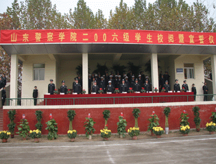 为坚持政治建警,抓好新生入学教育,培养学生忠诚、严谨、团结、奉献的优良品德,尽快实现从普通青年到预备警官的转变,按照公安部公安院校正规化建设要求, 11月18日下午,学院在东校区隆重举行2006级新生校阅暨宣誓仪式,以检验今年新生教育训练成果,展示山东警察学院大学生的精神风貌。