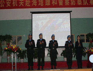 2005年12月至2006年8月,由我省公安机关独立组建的中国第三支维和警察防暴队赴海地执行维和任务。期间,125名防暴队员牢记党和人民的重托,不惧艰险,不辱使命,出色完成了各项战斗勤务工作,为祖国和山东人民争了光,为维护世界和平做出了积极贡献。在这支维和警察防暴队中有8名同志是我校毕业的学生。他们在维和期间,英勇善战,表现了良好的战斗作风和过硬的素质品质,受到了维和部队领导和公安部的高度评价,也为学校争得了荣誉。
