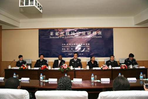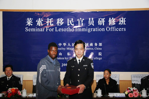 10月31日下午,由商务部主办,山东警察学院承办的莱索托王国移民官员研修班在我院举行结业典礼。山东省公安厅党委委员、学院党委书记、常务副院长杨和德,学院党委副书记、副院长王庆功,学院党委副书记、纪委书记王振华,学院党委委员、副院长王培韧,莱索托内务兼公共安全与国会事务部部长助理利妮·艾瑞妮·莫利斯,莱索托内务兼公共安全与国会事务部常务秘书利发·约瑟夫·穆豪友先生出席结业典礼。 典礼上,受商务部、省公安厅曲植凡厅长委托,杨和德书记向培训班学员逐一颁发了结业证书,赠送了我院精心制作的烧制有学员本人形象的陶瓷托盘。 杨和德书记在结业典礼上讲话。他首先代表中华人民共和国商务部、山东省公安厅、山东警察学院,向研修班的30位学员表示热烈的祝贺和诚挚的问候。他说,承担本次培训任务是商务部领导和莱索托王国对我们的信任,也是对我们工作的激励和支持。省公安厅和警察学院对此高度重视,加强了对培训工作的组织领导,精心筹划,严密组织,集中力量,认真搞好教学和服务工作。培训期间,组织有关专家学者向大家介绍了中国概况、中国儒家文化、中非关系、中国治安管理概况、中国公民出入境管理、外国人入出境管理、外国人在中国违法犯罪的处理等专题内容,并组织大家与山东警察学院师生就感兴趣的话题开展了座谈交流活动。培训期间,还组织大家实地考察了参观考察了山东省公安厅、济南市公安局、青岛市公安局的出入境管理工作情况,参观了济南泉城文化、泰安泰山文化、曲阜孔子儒家文化等。接下来还要安排大家到广东、北京参观考察。通过这些研讨学习和参观交流活动,大家对中国的经济社会发展以及公安出入境管理体制和警务工作情况有了相对全面的了解。杨和德书记强调,通过成功举办本次培训班,必将进一步增强中莱两国间的睦邻友好和相互信任关系,也必将进一步加强两国间的交流与合作。 研修班学员代表、莱索托内务兼公共安全与国会事务部部长助理利妮·艾瑞妮·莫利斯女士在结业典礼上致辞。她感谢山东省公安厅、山东警察学院为本次研修班所做的精心准备、周密安排,感谢学院对他们的关心照顾和热情接待。她说,中莱两国在和平共处五项原则的基础上建立了友好的外交关系,两国建交以来一直保持着高层对话,两国之间在军事、文化、教育、通讯等方面保持着良好的合作关系。2006年,中国国家主席胡锦涛在中非合作论坛北京峰会上,承诺在3年内将为非洲培训15000名各类人才。这次由中华人民共和国商务部委托山东警察学院承办的研修班,就是中国政府履行承诺的重要组成部分,也是中国帮助非洲国家培训人才的重要见证。我很高兴莱索托移民局的官员们在山东警察学院培训学习能为将来的工作提供有力的帮助。她希望中莱两国在移民和出入境管理方面有进一步的合作,希望彼此的友谊万古长青。 王培韧副院长主持了结业典礼。 结业典礼开始前,学院党委在家领导同志杨和德、王庆功、王振华、谭永红、王培韧、王离京,院长助理王在山、尹长杰与研修班学员合影留念。结业典礼结束后,莫利斯女士一行在王培韧副院长陪同下参观了外警学员的学习生活场所。 本期培训班10月11日开学,10月11至10月31日在我院学习,从11月1日开始,将在我院的组织下,到广东、北京等地进行考察学习,11月9日结束。 |