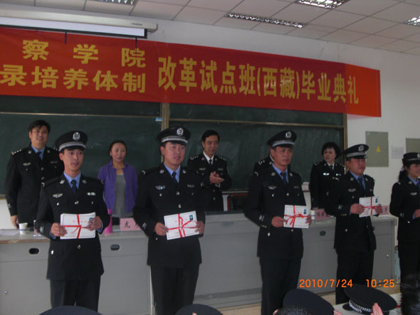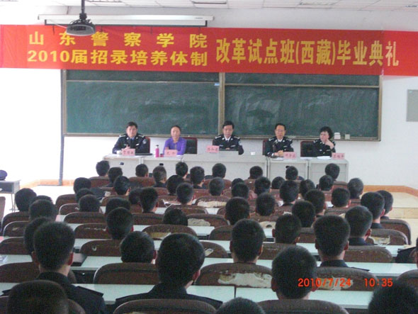 7月22日至8月1日,省公安厅党委委员、山东警察学院党委书记杨和德在学院办公室、后勤管理处负责同志的陪同下赴西藏出席我院2010届招录培养体制改革试点班(西藏)毕业典礼并慰问我省公安机关援藏干部。 7月24日上午,我院2010届招录培养体制改革试点班(西藏)毕业典礼在西藏警官高等专科学校举行,西藏自治区公安厅党委委员、西藏警官高等专科学校党委书记邓泽波,西藏自治区公务员局综合处处长龙珍出席毕业典礼。 典礼上,与会领导向2010届毕业生代表颁发了毕业证书和派遣证书。 杨和德书记在典礼上讲话,他充分肯定了试点班学员取得的成绩,代表省厅党委和学院党委向同学们提三点要求。一是要努力工作。当前,西藏特殊的社会情况和特殊的地理环境决定了公安机关维护社会稳定的形势更加严峻,任务更加艰巨,同学们要发扬不怕苦,不怕累的优良作风,坚定信心,勇挑重担,努力完成维稳的各项工作,确保西藏经济和社会发展的和谐稳定。二是要勤奋学习。当前我国社会稳定领域中国内与境外因素相互作用、传统因素与非传统因素相互影响、虚拟社会与现实社会相互渗透、人民内部矛盾和敌我矛盾相互交织的特点十分突出。这样复杂的对敌斗争形势在西藏更显得尤为迫切和突出,同学们要树立终身学习的理念,加强“三项建设”和公安业务知识的学习,不断提高自己的理论水平和政治素质。三是要遵守纪律。首先是遵守政治纪律,尤其是在西藏这个特殊的地方,政治纪律更是首要和第一位的。要不断增强自律意识,严守工作纪律,要经得住各种诱惑和考验,始终保持政治坚定和头脑清醒,保持人民警察的政治品格和职业道德。 邓泽波书记在毕业典礼上讲话,对毕业生提出期望和要求。山东警察学院后勤管理处负责同志主持毕业典礼,毕业生代表黄高飞在毕业典礼上发言,表达了立志从警的决心。 典礼结束后,与会领导同志与全体毕业生合影留念。 根据中央政法招录培养体制改革的部署,2008年我院承担了为西藏、青海等西部地区培养人民警察的任务。其中,为西藏培养193人。 在藏期间,杨和德书记一行到日喀则地区看望慰问了山东公安机关援藏干部,听取了日喀则地委委员、政法委书记、公安处党委书记于德斌的整体工作情况汇报和山东省公安机关第六批援藏干部的情况汇报,充分肯定了日喀则地区公安机关在地处高原、环境恶劣的情况下,为维护社会稳定、边疆安全取得的优异成绩。杨和德书记代表省公安厅党委对援藏干部提出四点要求:一是要加强学习。要认真学习党的民族政策、法律法规,不断加强作风建设,端正态度,加强调研,充分摸清情况,把内地先进的理念和知识应用到工作中去。二是要努力工作。要尽快铺下身子,找准角色,在当地党委、政府和公安处党委的领导下,以实际行动实现援藏工作目标。三是要加强团结。要加强民族团结,加强领导班子的团结,加强与当地公安民警之间的团结。工作要遵守民族政策,尊重少数民族的宗教信仰和风俗习惯,为加强民族团结做出积极贡献。四是要遵守纪律。首先要遵守政治纪律,在立场原则上同党中央保持高度一致。忠诚是警魂,始终做到对党忠诚;其次要遵守工作纪律,严格按照法律办事,注重工作程序,遵守规章制度,加强执法规范化建设。再是要遵守廉政纪律,始终做到严于律己,清清白白做人,干干净净做事。相信大家一定能够用自己的实际行动,为日喀则社会稳定和公安工作的发展做出积极的贡献。 西藏自治区公安厅党委委员、政治部主任林清海,日喀则地区党委副书记、常务副专员张宁波,林芝地区地委委员、政法委书记、公安处党委书记多吉次仁,公安处长陈海利等同志陪同参加了相关活动。 |