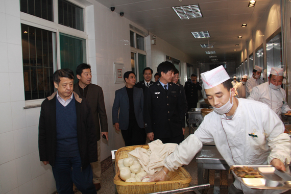 11月25日下午,由我院原副院长谭永红任组长,省教育厅高校后勤处处长李政玉,省教育厅高校后勤处主任李传文,山东建筑大学后勤处副处长李志广、山东经济学院后勤处副处长陆永忠、山东大学后勤处副处长潘福振为成员的全省高校学生食堂饭菜质量价格问题督查组莅临我院检查指导。学院党委委员、副院长王在山及后勤管理处、办公室等部门的负责同志陪同检查。
