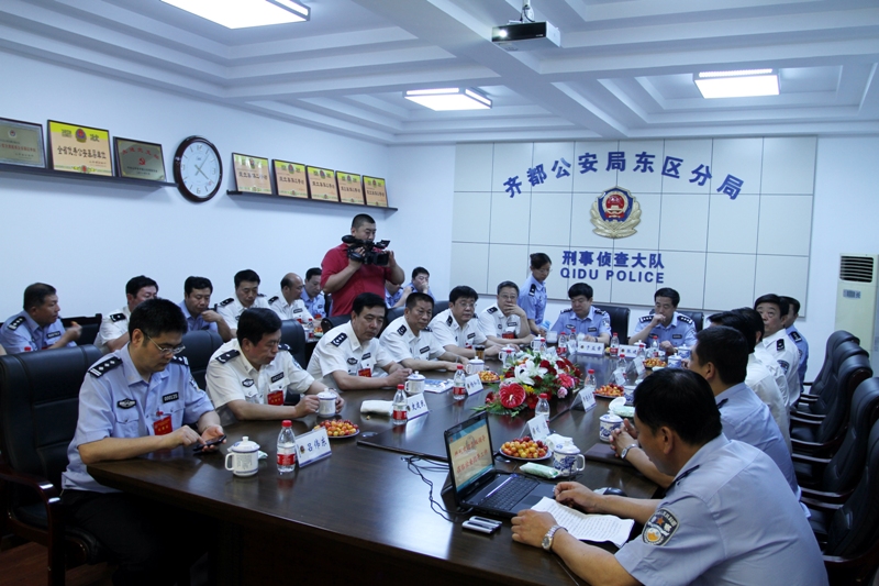 在齐都公安局,杨和德书记一行到东区分局虎山派出所、蜂山派出所、刑侦大队,实地检查了执法台帐、文件汇编、执法场所建设、使用和管理以及执法办案流程管理等情况,听取了齐都公安局及东区分局执法规范化建设工作汇报。
