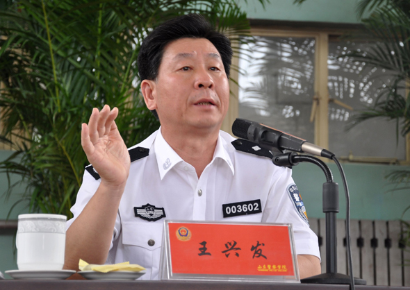 王兴发副院长在大会讲话。他说,山东警察学院是我省公安机关的重要组成部分,在校大学生是公安机关维护社会稳定的重要机动力量,2008年、2009年,学院积极参与奥帆赛安保和全运安保工作,圆满完成了各项工作任务,得到了上级领导和社会各界的充分肯定和高度赞扬。2010年,学院又抽调1200名师生参加了上海世博会的安保工作,实现了“零失误、零违纪、零缺陷、零遗憾”的工作目标,获得了公安部、上海市委市政府、世博会组委会、上海市公安局和省厅的表彰奖励和高度评价。正是因为我们的出色表现,今年,应深圳市公安机关的请求,经公安部协调批准,学院将再次整建制派出安保团队远赴广东深圳,参加第26届世界大学生运动会的安保工作。