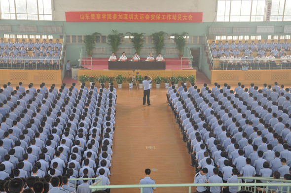 7月17日上午,我院在东校区体育馆隆重举行参加深圳大运会安保工作动员大会。