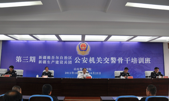根据山东与新疆和新疆生产建设兵团公安机关素质强警合作行动框架协议和年度计划安排,10月11日上午,第三期新疆维吾尔自治区、新疆生产建设兵团公安机关山东培训班(交警骨干)在我院开学。山东省公安厅组教处副处长、调研员侯林山,山东省公安厅交警总队副总队长、调研员肖洪茂,新疆维吾尔自治区公安厅交警总队副调研员朱凤玉出席开学典礼。