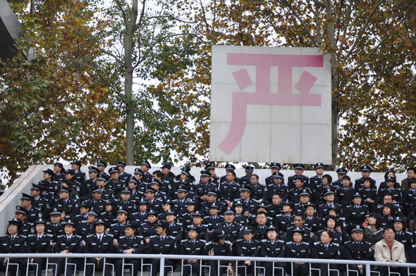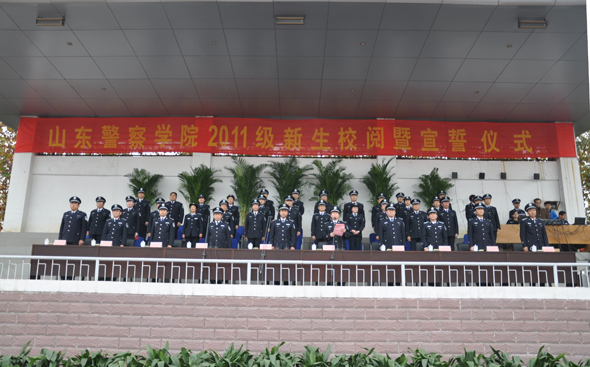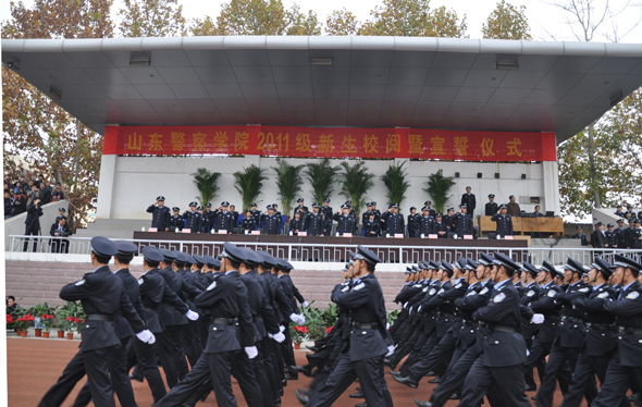 11月12日下午,我院在东校区田径场隆重举行2011级新生校阅暨宣誓仪式,以检验今年新生教育训练成果,展示山东警察学院大学生的精神风貌。