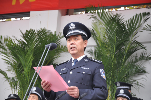 杨和德书记指出,2011级全体同学向大家展示了整齐的队列、规范的动作和蓬勃向上的精神风貌,给学院和家长交上了一份合格的答卷,为今后的学习和训练,为培养良好的纪律作风,为成为一名合格警察打下了必要的基础。杨和德书记代表省公安厅党委、学院党委提出了四点要求:一是要加强政治理论学习,坚定理想信念。二是要确立“忠诚”意识,打牢思想基础。三是树立“服从”观念,严格遵章守纪。四是要努力学习、刻苦训练。