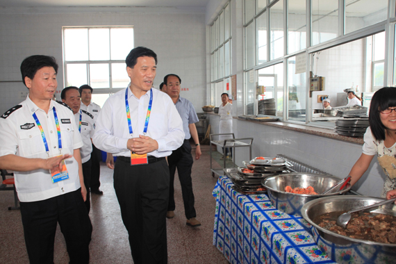 学院亚沙会安保领导小组组长、学院党委副书记王兴发代表学院党委热烈欢迎夏耕副省长一行,他简要汇报了学院基本情况,特别是参加历次大型安保活动的情况。王兴发副书记代表学院表示,一定要牢记嘱托,不辱使命,发扬山东公安机关不怕疲劳、连续作战、忠诚奉献的精神,全力配合烟台公安机关,认真履责,力求在我们的执勤岗位上不出现任何失误和差错,圆满完成好各项安保任务。随后,夏耕副省长一行查看了我院安保驻地的宣传展板,并深入学生宿舍、餐厅查看了内务卫生和伙食保障情况。慰问期间,夏耕副省长一行向学院参战师生发送了矿泉水、鸡蛋、黄瓜、肉食品等慰问品。