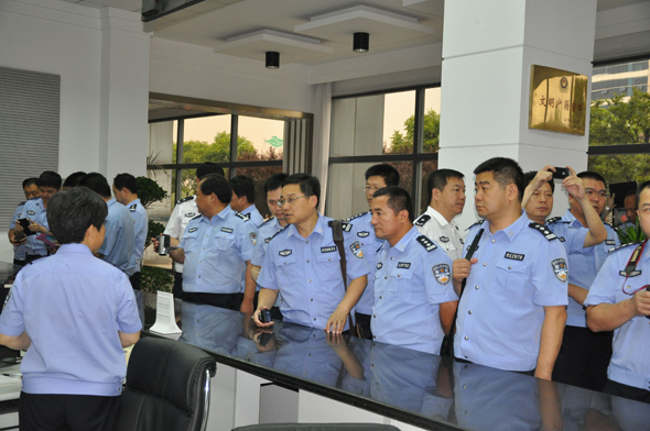 第12期全国首任县市公安局政委培训班学员 到龙口市公安局开展现场教学 6月12至13日,公安部委托我院承办的第12期全国首任县市公安局政委培训班全体学员,在学院党委委员、纪委书记尹长杰的带领下到烟台龙口市公安局开展现场教学。 期间,尹长杰一行听取了龙口市局负责同志关于龙口市公安工作和队伍建设的情况汇报,实地考察了东莱派出所松岚花园社区警务室、市公安局警务综合服务大厅,现场查看了龙口市局警营文化展、市局110指挥调度中心,观看了市局科技强警宣传片。 参观结束后,大家对龙口市局加强公安队伍建设、创新警务管理工作机制、用信息化提升警务效能等给予高度评价。大家一致认为龙口警方在警务机制创新、社会管理创新、执法规范化、和谐警民关系和信息化建设等方面,特色鲜明,亮点突出,值得认真学习和借鉴。 本次现场教学活动得到烟台市公安局,龙口市委、市府和市公安局的大力支持。龙口市委常委、政法委书记周学军、龙口市政府党组成员林涛,烟台市公安局副政委、公安干校校长宋光明,烟台市局政治部副主任刘洪江,龙口市公安局党委书记、局长徐海生,龙口市公安局党委副书记、政委刘衍江陪同参加活动。 学院干部培训部主任郭景华,学院办公室和干部培训部有关同志以及来自国内9个省、市、区的100名县市公安局政委参加现场教学活动。  考察警务综合大厅  参观市局110指挥中心  学员询问户籍管理工作相关流程 新闻提供:办公室调研科 照片提供:办公室调研科 |