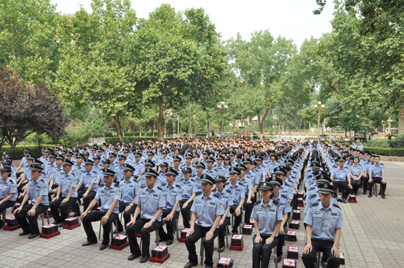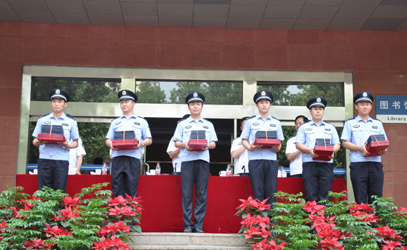 学院隆重举行2012届学生毕业典礼 6月20日下午,学院隆重举行2012届学生毕业典礼。省公安厅党委委员、学院党委书记杨和德,学院党委副书记王兴发,学院党委委员、副院长王培韧,学院党委委员、副院长王在山,学院党委委员、纪委书记尹长杰出席毕业典礼并在主席台就座。 典礼上,学院领导向2012届毕业学生代表颁发了毕业证书和学士学位证书。 杨和德书记在典礼上讲话。他说,今天是山东警察学院一个重要的日子,从今天开始,学院将有883名优秀同学,奔赴维护社会稳定和公安工作的第一线,去实现人生的理想,去报效祖国和人民。杨和德书记说,入学以来,同学们通过母校的培养,通过老师的教诲以及自身奋斗,完成了从一个普通老百姓到一名合格人民警察的转变,每一个同学应当感到高兴,作为老师也感到骄傲。他代表省公安厅党委、学院党委以及学院全体老师向毕业生表示祝贺。 杨和德书记说,作为一名在警院工作34年的老师,大家将是我送走的第32届毕业生,此时的心情既感到高兴,又感到留恋。很高兴看到又有一批德才兼备、纪律严明、作风过硬的学院学生充实到公安第一线,使山东公安工作和队伍建设在原有的基础上,有新的进步和提升。虽然大部分同学我叫不上名字,但知道大家在课堂上的朗朗读书声,在训练场上铿锵有力的口号声,在各种安保活动中认真履责的良好表现,在各种表彰奖励中所包含的心血、汗水和泪水,我为此感到非常的骄傲和高兴。 在同学们即将离开学校,奔赴工作岗位之际,杨和德书记向大家提出三点要求。一是要认真学习。学无止境,学海无涯,在校期间的学习只是为今后的工作打下了基础条件,要想真正成为一名合格的人民警察,真正担负起应承担的责任,大家需要在社会实践中学习,需要向老同志学习,需要在实际工作中去体会和感悟,需要同学们把在书本上学到的知识灵活运用到公安实际工作中去。二是要勤奋工作。当前我国正处于人民内部矛盾凸显、刑事犯罪高发、对敌斗争的复杂时期,公安工作和维稳形势面临新的挑战和考验,大家必须努力工作,勤于思考,兢兢业业,勤勤恳恳,谦虚谨慎处理好每项工作和事务,真正把自己从一名公安大学生转变成合格的人民警察。三是要遵守纪律。要时刻筑牢拒腐防变的防线,自觉抵制各种诱惑,做到心中有数、心中有惧,在法律法规等高压线前,绝不越雷池半步。要以史为鉴,守住底线,严格自律,自觉遵守党纪国法,确保不出问题。 王兴发副书记主持毕业典礼,他希望全体毕业生要牢记人民警察的神圣使命,牢记自己的庄严承诺,牢记学院领导和老师的期望,始终坚持正确的政治方向,认真学习,勇于实践,严守法纪,服从命令,听从指挥,把自己锻炼成政治坚定、纪律严明、作风过硬、业务精通、执法公正的优秀人民警察。 毕业典礼上,全体毕业生重温了《入警誓词》,再次表达了立志从警的决心。教师代表、侦查系讲师侯睿,毕业生代表、治安系2008级本科五中队学生赵宗斌分别在毕业典礼上发言。 毕业典礼开始前,学院领导同志与全体毕业生合影留念。 院属各单位党政主要负责同志,各系学员支队长、各毕业班大队长及2012届全体毕业生参加了相关活动。