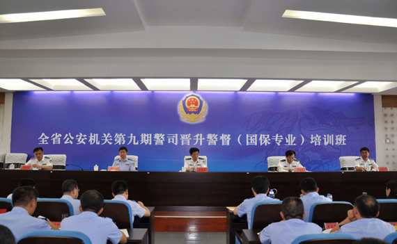 上午,全省公安机关第九期警司晋升警督(国保专业)培训班在我院开学。学院党委委员、副院长王培韧,省公安厅国保局政委鲍毅民,国保局综合处处长张培林出席开学典礼。