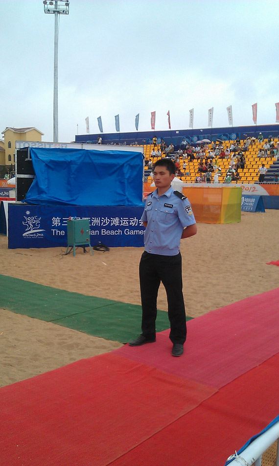 至22日,亚沙会卡巴迪比赛在海阳市国家沙滩体育健身基地举行。我院27名执勤师生,在带队民警的带领下圆满完成了安保任务。期间,共安检人员33280人次,查扣打火机374个,管制刀具163把,查扣不合格证件86个,查处私自携带管制刀具的违法者7人。执勤过程中,广大师生认真负责,严格按照工作要求完成了各项任务,充分展现了学院学生的精神面貌和内在素质,赢得了执勤民警、运动员、现场观众和媒体记者的广泛好评。