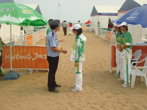 6 月17日 至21日,我院帆板安保团队18名执勤师生在带队民警和老师的指挥带领下,圆满完成了亚沙会帆板比赛安保任务。期间,安保师生共安检人员8263人次,查获违禁品打火机74个,管制刀具14把。安保团队的每位志愿者克服种种困难,履职尽责,恪尽职守,受到民警的一致好评。