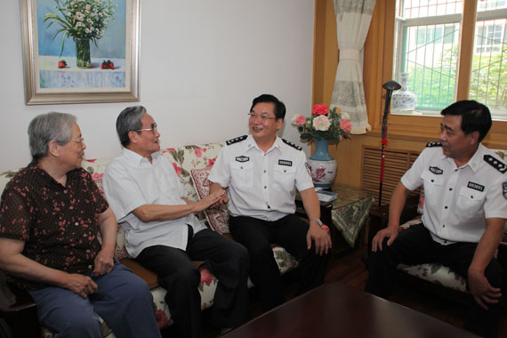 在校期间,省公安厅党委委员、学院党委书记杨和德,学院党委委员、副院长王培韧,学院党委委员、副院长王离京分别陪同徐珠宝厅长、毕宝文副厅长、王兆玉主任看望慰问了学院部分离退休老同志、老教师,并赠送了花篮和水果,向他们致以节日的问候,表达厅党委对他们的关心和关怀。