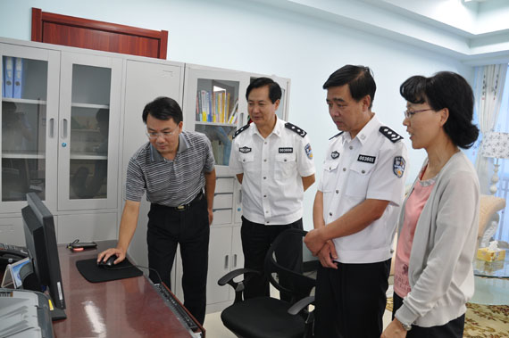 9月19日上午,省公安厅党委委员、学院党委书记杨和德在学院党委委员、副院长王在山的陪同下到专业基础教研部检查指导山东省公安民警心理健康服务中心相关工作。