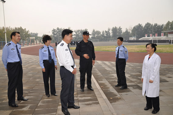 10月5日上午,省公安厅党委委员、学院党委书记杨和德到东校区检查新生训练工作。