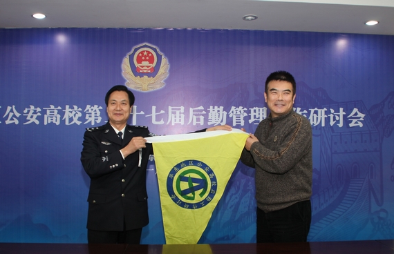 会上,我院后勤管理处负责同志介绍了学院后勤管理工作的有关做法等情况,与会代表们围绕公安院校后勤管理相关问题进行了深入的探讨和交流。最后举行了会旗交接仪式。王在山副院长与下届会议主办方南京森林警察学院吉小林副院长交接了会旗。