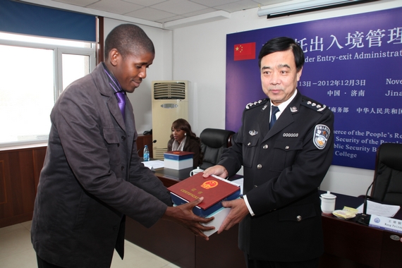 杨和德书记在典礼上讲话,向培训班各位学员表示祝贺。他说,在学院学习期间,我们组织有关专家学者向大家介绍了中国国情、中英会话、中国儒家文化、中国出入境管理概况、中国公民出入境管理制度、外国人入出中国国境管理制度、中华人民共和国外国人永久居留制度、中国边防检查概述、外国人在中国违法犯罪的处理、中国国籍制度、太极拳、国际移民问题、国际非法移民的现状与对策、中国劳务输出现状与发展等专题和内容,并与学院教师进行了座谈交流。此外,大家还考察了省公安厅出入境管理局和聊城市公安局,游览了趵突泉、大明湖、山东省博物馆等景点。通过这些专题、交流和参观考察活动,使大家对中国的公安机关和公安工作以及经济社会发展情况有了初步的了解。杨和德书记说,在学院期间,我们还组织大家参加了学院2012级新生阅警暨宣誓仪式和迎新生晚会,尤其是在迎新晚会上,研修班女学员们带来了精彩的非洲歌舞表演,给我们留下了深刻的印象。杨和德书记指出,维护社会稳定、打击犯罪是大家的共同职责。相信,通过成功举办本期研修班,必将进一步增强中莱两国间的友谊和相互信赖,进一步促进两国警察和移民部门之间的相互理解和友好合作。杨和德书记祝中莱两国间的传统友好关系更加牢不可破,并不断结出硕果。