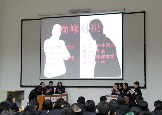 经过近50天47场比赛的激烈争夺,2011级本科侦查六中队和2011级本科治安五中队晋级决赛。比赛中,双方辩手紧紧围绕辩题,充分运用所学知识,结合自己观点,慷慨陈词,唇枪舌剑,激烈辩论,为观众献上了一场激烈对决,其活跃的辩论思维、精湛的辩论技巧和巧妙的语言赢得台下阵阵掌声。