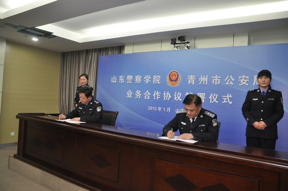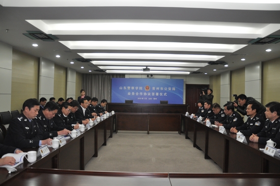 1月4日,省公安厅党委委员、学院党委书记杨和德在学院党委委员、副院长王在山的陪同下,到青州市公安局考察调研,并出席学院与青州市公安局业务合作签字仪式。