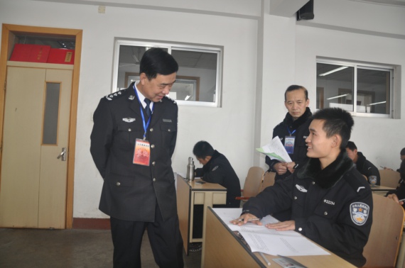 1月22日上午,省公安厅党委委员、学院党委书记杨和德在东校区巡视本学期期末考试的工作现场。1月19日上午,学院党委委员、副院长王在山在西校区巡视本学期期末考试的工作现场。