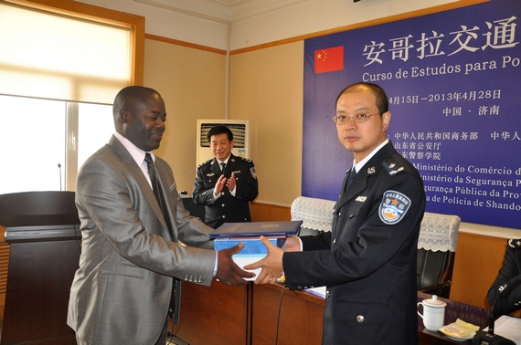 外警代表、安哥拉纳米贝省交通厅厅长路易斯·堪干若在结业典礼上发言。他说,非常荣幸能有机会来了解世界伟大的思想家之一——孔子的故乡。培训期间,给我们安排了一些实用的、我们感兴趣的和适合我们知识的专题讲座。我们确信此次第一批安哥拉警察培训班是非常地成功的,同时也展现了两个国家间的友谊,希望两国人民更加紧密的团结在一起。