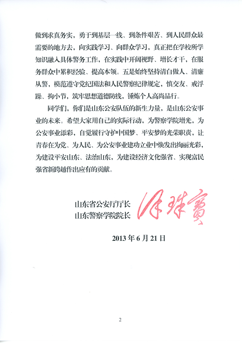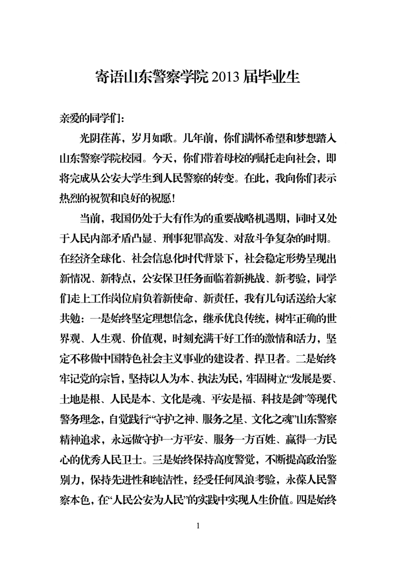 省长助理、省公安厅厅长、学院院长徐珠宝对2013届毕业生的寄语
